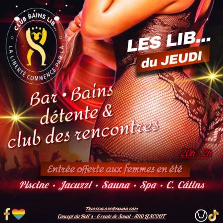 les vendredis soirée Libertine dans un lieu insolite sans vis à vis lieu discret avec Bar cocktails piscine jacuzzi sauna Spa-piscine chauffé belle clientèle de couples nombreuses femmes seules et les jeunes messieurs sont les bienvenus