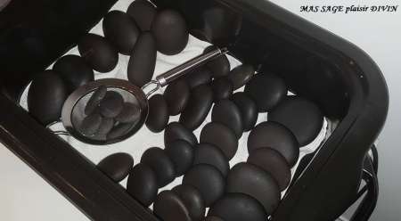 Massage avec des pierres chaudes authentique de Basaltes. Ce massage est pratiqué uniquement sur table de massage. Les pierres sont posées à même la peau en statique et en dynamique avec huile de massage. Massage de la face arrière et avant.