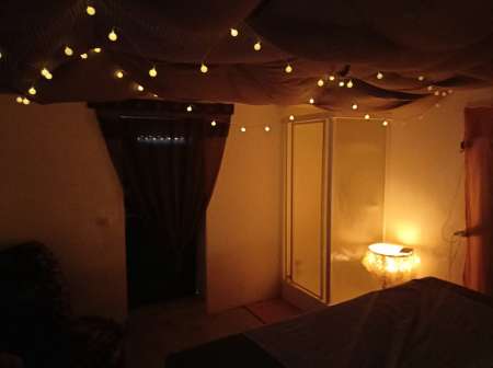 Je reçois uniquement à mon domicile j’ai une pièce climatisée avec douche à disposition et vous vous garer dans ma cour