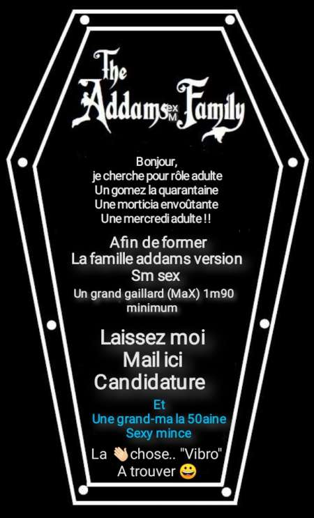 Formation d'un petit groupe de libertin pour des pluralité, partouse, soirée privée, club. pour les rôles suivants :Morticia.